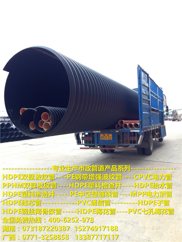 产品系列关键字:HDPE双壁波纹管,HDPE钢带增强螺旋波纹管,HDPE中空壁缠绕管,HDPE给水管,PVC通信管,多孔梅花管,CPVC高压电力套管,塑钢缠绕管排水管,HDPE子管