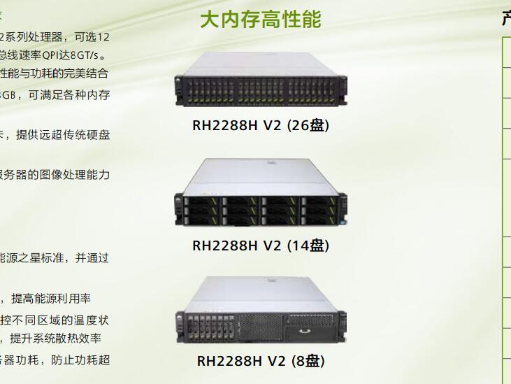 配置说明:标配1颗Intel Xeon E5-2609 V2(四核-2.5GHz-80W);可支持2颗Intel Xeon E5-2600全系列处理器;DDR3 Registered DIMM 8GB(1.5ns-1600MHz-1.35V-ECC-2Rank);可支持24个内存插槽;标配2*GE以太网卡;可升级为2*10G以太网卡 或 4*GE以太网卡;标配1块SR120(SAS/SATA,RAID0,1,1E,0 Cache)智能阵列控制器;标配1块3.5 inch 1TB SATA硬盘(7200rpm);可支持4块3.5inch SAS/SATA热插拔硬盘;标配2个PCI-E 3.0插槽(1个PCIe 3.0 x16插槽,1个PCIe 3.0 x8 插槽);单CPU配置时只支持1个PCIe 3.0 x16插槽,双CPU配置时支持2个PCIe插槽;N+1个冗余系统风扇;5个USB(前面2个,后面2个,内置1个);集成BMC管理模块,支持华为iMana,支持IPMI、SOL、KVM Over IP、虚拟媒体等管理特性,对外提供1个10/100Mbps RJ45管理网口;标配1个460W金牌交流电源, 可选冗余;备份还原工具;无DVD;导轨;1U机架式
