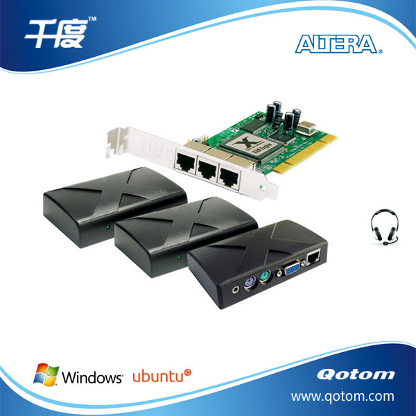 千度科技(Qotom)生产研发的电脑共享器系列产品,产品稳定、性能卓越、功能强大、硬件兼容性好。最高可支持高达31个用户同时使用一台电脑。支持大部分WINOOWs操作系统,支持linux操作系统。