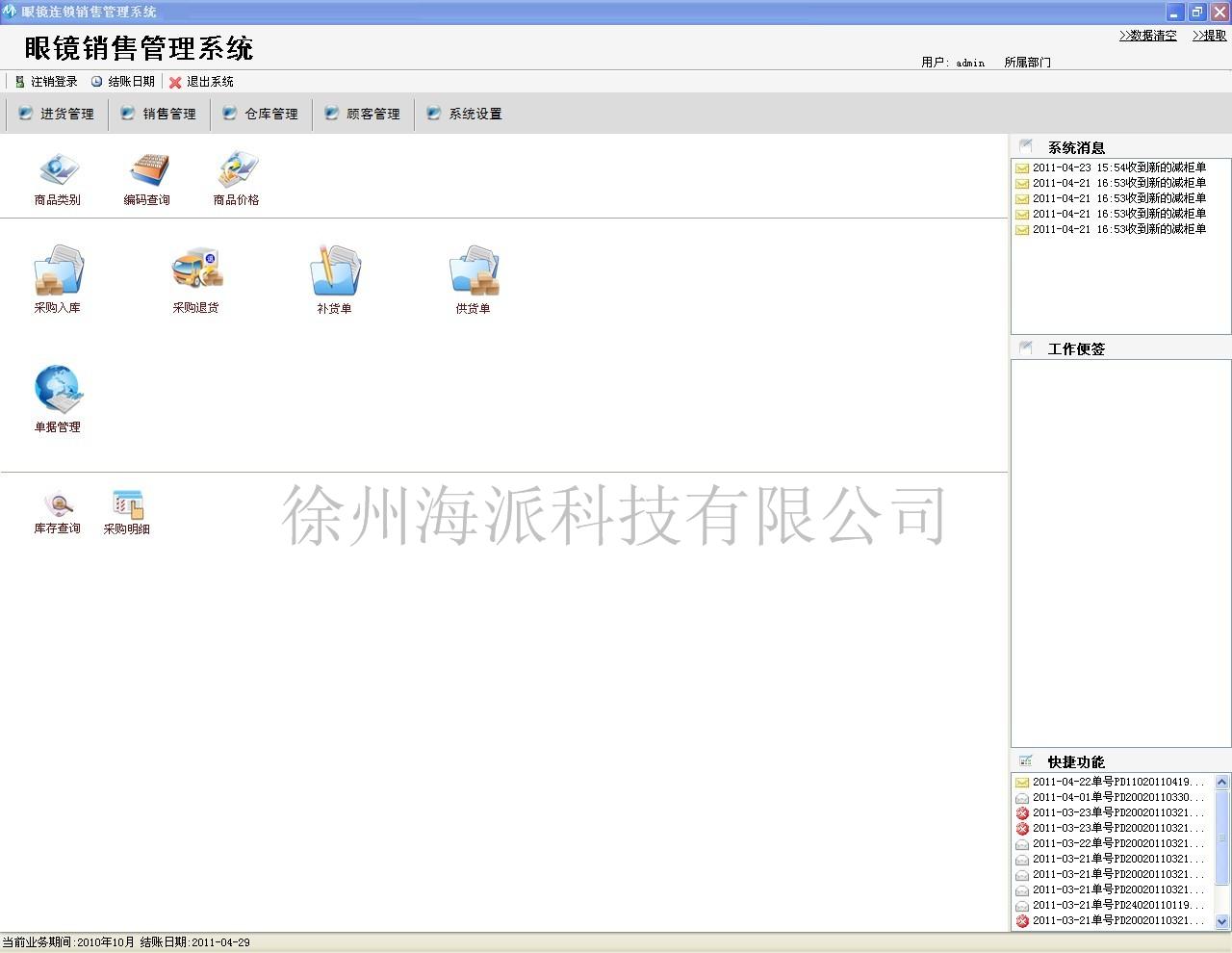 根据以上种种情况,可以看出这些问题制约着眼镜企业的的发展。而随之信息技术的高速发展,可以为其解决当前面临的所有问题。企业信息化提升了企业内部管理的水平和精细化程度,从产品的采购、配送、销售、实时监控、清算等进行全方位统一管理。另外,通过一些数据报表的统计,对各类产品进行销售分析并实施有效监控。所以我们徐州海派科技有限公司根据客户的需要,深入对其行业进行了解,掌握其具体的业务操作流程,为其研发了这样一套眼镜销售管理系统。