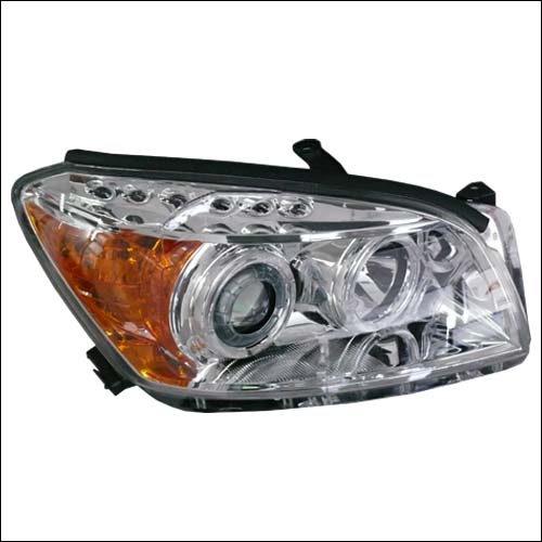 丰田RAV4 09天使眼大灯,饰矿喷黑漆+白水晶灯+黄色反射片
