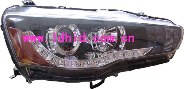 7、本品为运动款黑底色三菱翼神双氙气双天使眼大灯总成。