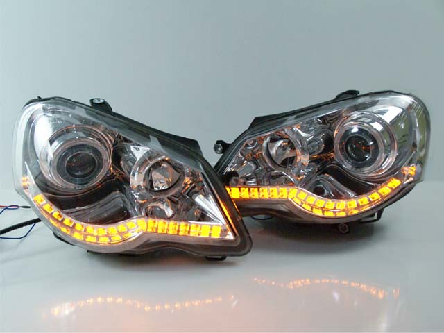 大灯是人的眼睛,有好的眼睛才能更好的走路波罗超炫双氙气天使眼大灯,绚丽的LED转向灯,时尚运动的外形设计,不管是在白天还是夜间都成为行驶中的焦点。两近光四远光,远近光切换无延时;避免了远近光切换时延时造成的盲区。若在高速上行车2秒内的行程是不可估量的。拥有安全和健康才能拥有一切,安全至上所以要选择波罗超炫双氙气天使眼大灯闪电般的远近光切换给您带来夜间行车安全保障。标准氙气光型、照射路面宽远;120度大视距,夜间照明明显提高;切割线清晰,不眩光不影响对面司机;35W功率,亮度却比55W卤素灯泡亮度提高三倍,不须改动原车线路,直接安装即可,原车线路安全承载,最大程度提高电气效能。