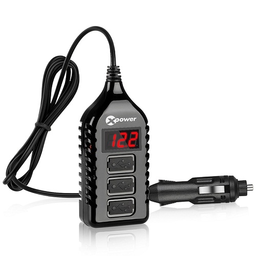 高欣一拖三带数显车载充电器 导航仪专用 大电流输出 快速充电