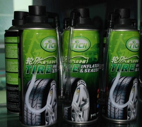 使用方法:当轮胎被扎破漏气后使用本品时,为使本品获得最好的效果,必须把空气导管装上喷头,并垂直于轮胎空气入口,按下充气补胎液的阀门,会自动往轮胎里加压缩空气,同时也会注入像发胶一样的白色的补胎胶,待充气完成轮胎压正常后,必须立刻驱车行驶3~5公里,使里面补胎胶变成一层保护层,并附着于轮胎内表面,填充胎内小孔,使空气不再泻出。