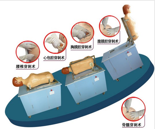 临床常用诊疗技术是诊断学的教学重点和难点,特别是胸穿、腹穿、腰穿、骨髓穿刺、及心包腔穿刺等,还是国家执业医师考试中实践技能考核的重点。传统 的教学方法已不能满足新时期教学需要,学生很难掌握这些实践操作技能。我公司经几年努力反复试验,已研制出多种穿刺、叩诊电脑模拟人,其特点是自动化程度 更高,穿刺时模拟人体位的调整也完全自动化。当进行心包穿术或胸腔穿刺术时,按动控制器面板钮,即可使模拟人由平卧位自动变为半卧位或坐位。当进行腰椎穿 刺术时,可使平卧位自动变位侧卧位。实习完华按动复位按钮可使模拟人恢复平卧位。切实解决了医学教育中,临床常用诊疗技术技能训练难题,并可用于在职医务人员培训及基本技能考核。