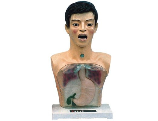 2、 模型为标准的成人上半身,胸腔为解剖结构标志,透明的胸壳可直观演示操作功能