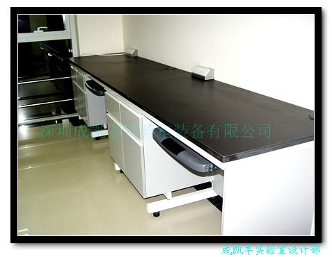深圳成凯丰免费服务:实验室规划设计,实地测量. 生产和销售:中央实验台、边台实验台、实验室家具、实验室设备、实验室通风柜、实验室通风橱、气瓶柜、角柜、器皿柜、天平台、高温台、仪器台、实验凳、洗眼器、万向排气(风)罩、原子吸收罩.说明:我公司(深圳成凯丰实验室装备有限公司)生产的实验台具有轻巧、承重、美观、组合方便的特点。实验台的两端可按客户需求各带一水斗台:水斗台面为黑色实芯耐腐理化板,水槽为进口PP材料实验室专用水槽,防酸碱腐蚀,有弹性,水龙头为实验室专用三孔化验水龙头,耐酸碱及有机物的腐蚀,实验台/边台/中央台主体分全木结构,钢木结构,全钢结构,根据您的要求给您配置台面。 简介:我公司(深圳成凯丰公司)成立于2004年,是一家专业生产深圳实验台/实验室家具的设备厂家,高品质,优质的服务,让您买的放心,用的称心!欢迎有实验室建设或实验室家具设备(中央实验台/边台、通风柜)需求的客户与我们联系,竭诚为您服务.