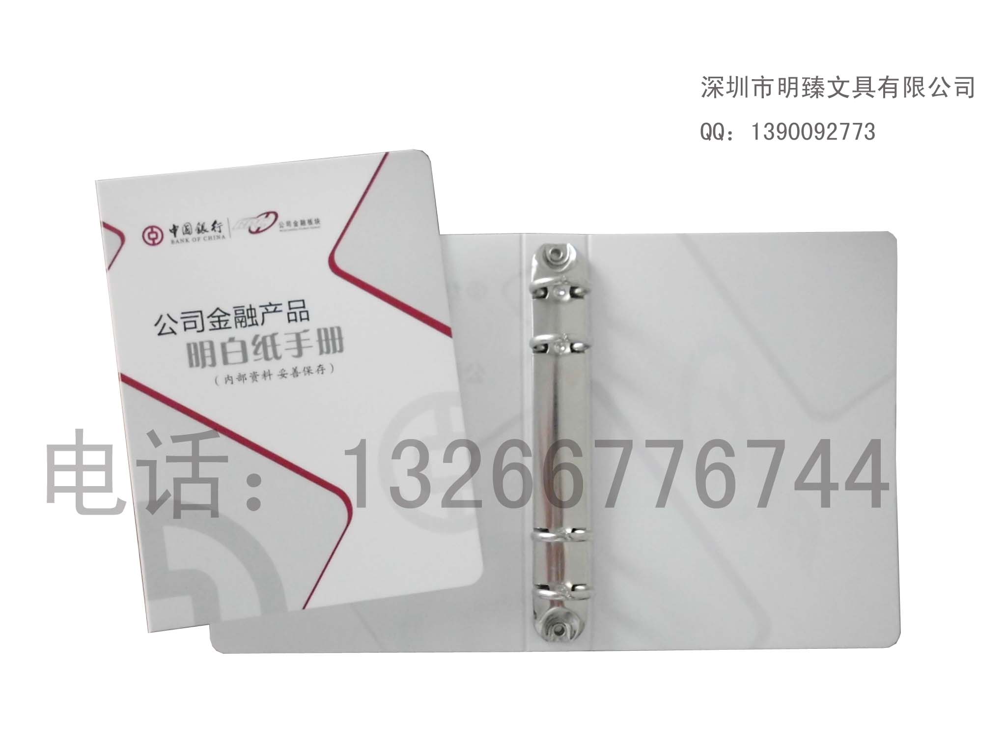 材质:PP文件夹采用优质环保耐用PP原材料生产,在文件夹封面柯印中国银行名称及LOGO,钉四孔铁夹,功能:用于企业重要文件的存档及管理