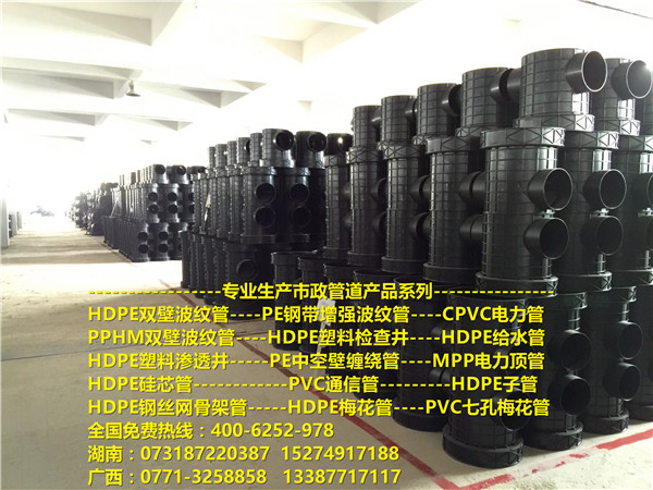 公司主要生产市政工程管道 民用管道 塑料检查井,是中南地区生产管道品种最多最齐全的生产厂家之一。
