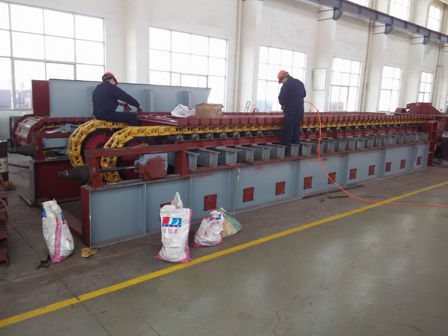 链板装置驱动链采用履带链(坦克链)。链板为单圆弧或双圆弧搭接形式,抗冲击、耐磨损、不漏料。