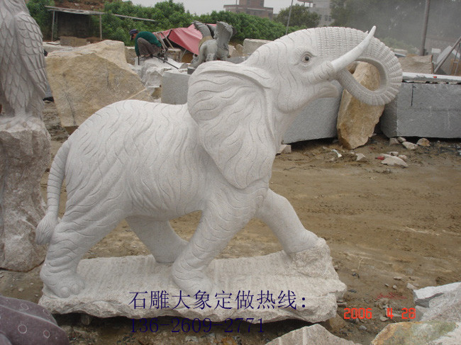 石雕大象可用的石材有福建白麻石、青石、黄锈石、汉白玉、花岗岩、大理石、雪花白等。