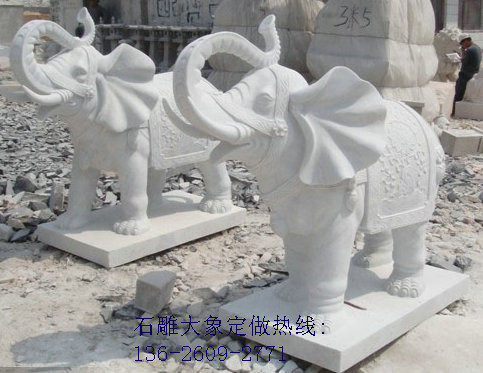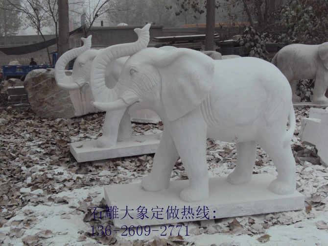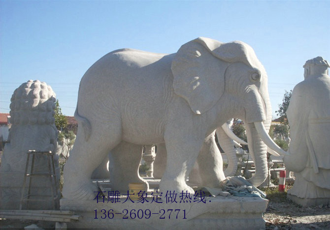 石雕大象可用的石材有福建白麻石、青石、黄锈石、汉白玉、花岗岩、大理石、雪花白等。