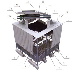 (7)百叶窗:玻璃钢材质,可防水溅出,并可使进塔气流均匀。