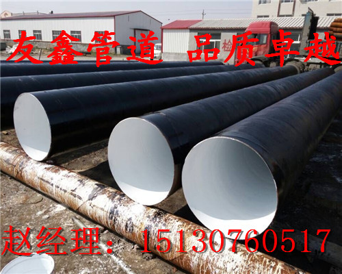 公司专业从事环氧煤沥青防腐钢管,无溶剂环氧煤沥青防腐钢管,三油两布防腐钢管,玻璃布缠绕防腐钢管,四布六油环氧煤沥青防腐钢管,常见的有一布两油,三布两油,五油三布,七布四油。环氧煤沥青防腐螺旋钢管组份为环氧煤沥青底漆和面漆,,都是以环氧树脂和煤沥青为主要成膜物,添加各种防锈颜料、绝缘性填料、增韧剂防沉剂等制成。外观:底漆甲组分铁红色,乙组分黑色,面漆均为黑色。具有优异的耐化学介质腐蚀性和良好的物理机械性能,粘结力好,涂膜坚韧,并有优异的电绝缘性和抗渗透性,抗杂散电流和抗微生物侵蚀性,成膜后,可减少施工道数。主要的执行标准SY/T 0447-96《埋地钢质管道环氧煤沥青防腐层技术标准》和SY/T 0457-2000《钢质管道液体环氧涂料内防腐层技术标准》。主要用于埋地或水下钢质输油、输气、供水、供热管道的外壁防腐,也适用于各类钢结构、码头、船舶、水闸、煤气储罐、炼油化工厂设备防腐及混凝土管、污水池、楼顶防水层、卫生间、地下室等混凝土结构的防水和防渗漏。