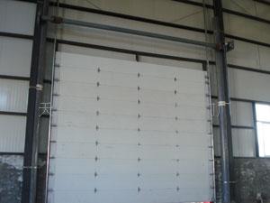 【天津提升门】门板采用0.3-0.5彩钢内填充40mm/50mm/75mm厚度聚氨酯,门板具备防夹手、防雨水特性,门板具有隔热、隔音、保温等优点