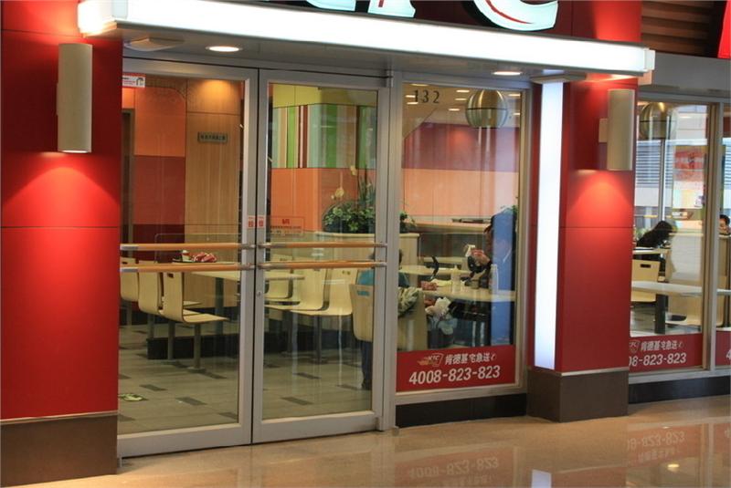 2. 肯德基的门对比传统的铝合金门和玻璃门它的制作技能更加科学一起,铝合金型材选用格外加厚加宽描写,制品组装而且全部选用不锈钢紧固件紧固,门扇角部选用加厚铝合金槽形角码联接,联接处选用高频氩弧铝焊接,使规划联接更强健、抗冲击,不易变形。处理了传统铝合金门和玻璃门运用进程中门扇简略下垂变形或易位的疑问,门的修补率极低,运用寿命更耐久。