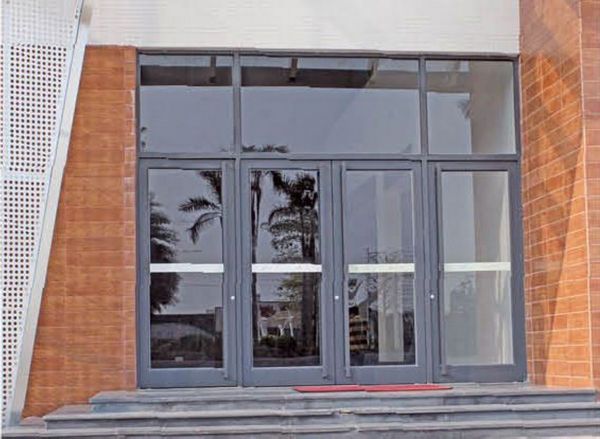 肯德基门主要由门框、门扇、门体玻璃、大拉手、大铰链、闭门器等组成。该门型均可安装于室内和室外。每樘门有两个门扇,左门扇、右门扇。门扇厚度40-60mm。 门扇一边的边框与门框之间由大铰链连接,门扇另一边门边框上安装有扳动式上下插销,门扇顶部横梁一侧安装有闭门器与门框连接。门体大铰链采用底部螺栓旋紧方式,美观大方,经久耐用。门扇中间部分可增加横撑,美观的同时也方便行人出入。门扇玻璃为钢化玻璃,门体安装不锈钢拉手,美观且方便行人出入。