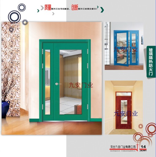 四、玻璃防火门:玻璃面积超过门扇面积30%的防火门称为玻璃隔热防火门,框扇材质可选用冷轧钢板或不锈钢板。造型美观、高强度、高透光率、造价高,适用于高档办公、商业、医疗建筑大厅、防火分隔。