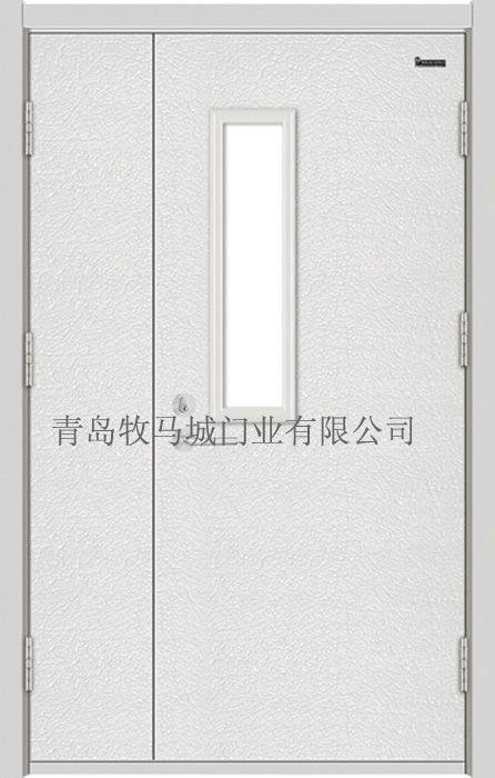 2、门扇内部填充新型环保阻燃隔热材料,经环保胶粘剂压制成型。在门扇与门框结合处、防火玻璃周边,均做防火密封处理,使防火性能大大加强。