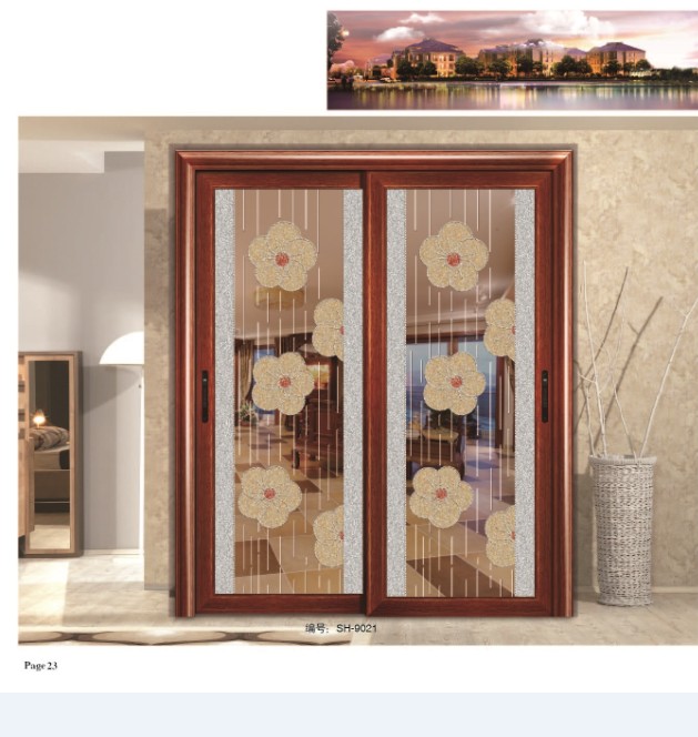 供应花鸟玻璃门 车刻工艺玻璃门 重型铝合金推拉门