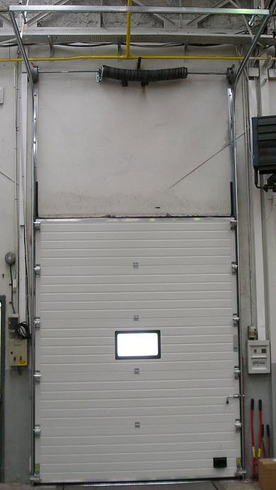 工业滑升门是通过电动过程使门体或垂直向上或沿屋顶拐弯提升的一种专门用于厂房外部的工