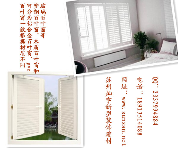 苏州塑钢百叶窗,苏州塑钢百叶窗厂家 苏州灿宇门窗的价格,产品质量可靠,性价比高,量身定制,经久耐用!联系人:彭小姐 联系电话:18913514088 咨询qq:2337994884 公司地址:苏州市吴中区迎春南路112号