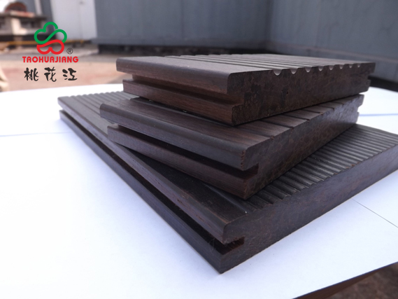 桃花江重竹板采用楠竹竹片为原料,经过竹片拉丝,胶合重组工艺加工而成,具有压合紧密,密度高,硬度大,强度好,防虫防蛀,防水防潮的特点,同时相对实木有更高的性价比。
