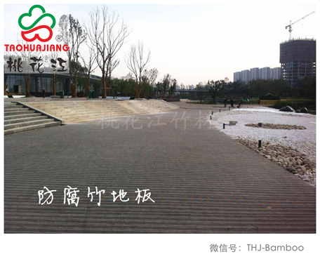 桃花江所产的竹户外地板是采用可持续发展的竹子做基础材料加工而成,对居住环境不会产生任何的破坏,而且阳光对竹地板的照射不会反射热量,具有吸收热量的特殊功能,能有效降低地面高温,减少热岛效应,是名符其实的生态户外地板。