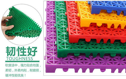 强度:从原料的选取到PP的改性处置均独立完成,从源头上保证了产品的质量,使产品抗老化、耐紫外线、耐高温、耐低温,在保证了产品强度下又增加了产品的韧性,保证了产品的运用寿命。质量不合格的产品用力对折地板或用力拉折地板锁扣,会直接断成两截,过软的产品达不到球的回弹率。