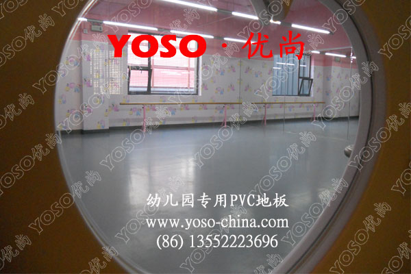 YOSO幼儿园室内专用PVC地板100%纯PVC耐磨层,厚度达1.5mm,并经防老化和紧固技术处理,耐磨耐压,使用寿命可达6年。 幼儿园室内专用PVC地板的玻璃纤维补强网和特殊网格布纤维加强层起到稳定场地尺寸、延长使用寿命的作用,使地板永不收缩,性能更加稳定。