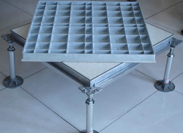 铝合金防静电地板系统有地板、横梁、支座组成。横梁和自身高度可调的支座用螺钉连结成稳固的下部支承系统,地板镶嵌入横梁围成的方格内。