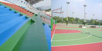室内外网球、排球、篮球、手球、羽毛球等场地; 学校、幼儿园、公园游戏地板等; 屋顶运动场、多用途运动地板。 性能特点 具有极为优异之耐候性,耐磨耗性,耐水性,接着性,多种色彩。表面上止滑处理,弹性佳,清洁保养容易维护修补容易。