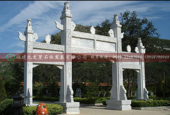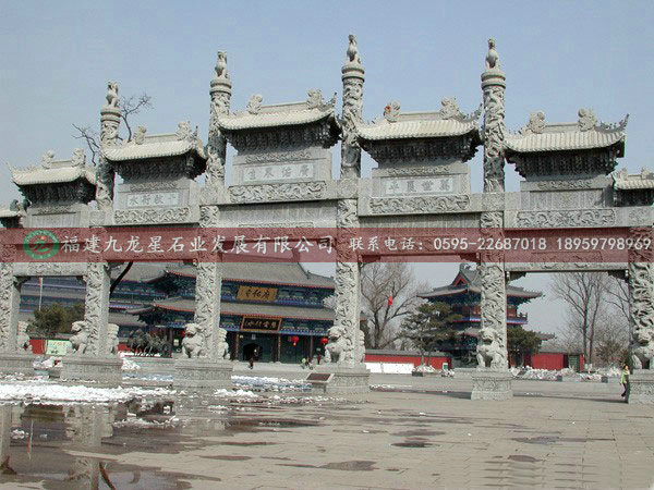 1、点缀风景,引人入胜。在风景区或古迹群内,尽管石雕牌坊是陪体建筑,但是它往往能起到画龙点睛的作用。