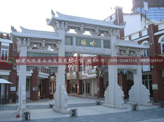 2、点缀城市,古色古香。现今城市街道两旁高层建筑耸入云际,街上车水马龙自然是现代化大城市的一般景象。但是当人们步入石雕牌坊装饰的街道,古香古色。