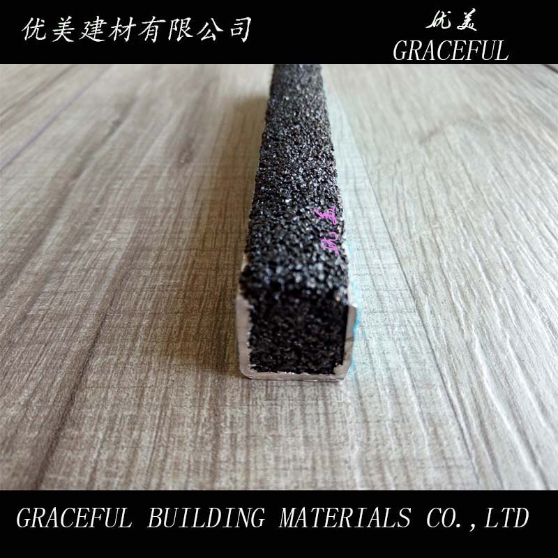 优美公司根据建设单位要求设计了无震动金刚砂车道防滑条施工方案,该车道是有铝合金和金刚砂组成的,色彩:黑色、绿色、红色常用色 钝角150度双向车道。