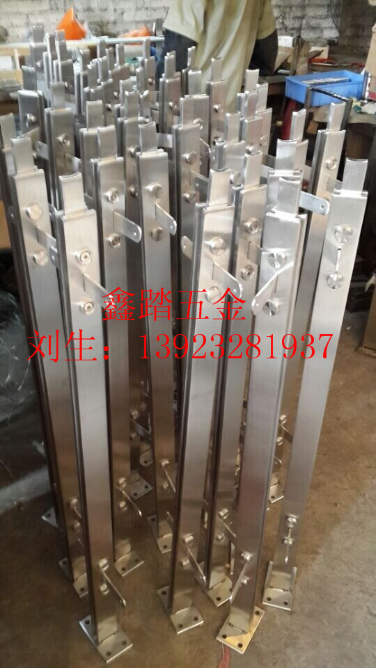 佛山市鑫踏五金专业产销不锈钢玻璃栏杆,不锈钢扶手立??柱、不锈钢栏杆立柱、不锈钢楼梯立柱、不锈钢立柱、不锈钢工程立柱、不锈钢玻璃扶手、不锈钢拦河立柱、平台栏板立柱、阳台栏杆立柱、别墅栏杆立柱、商场栏杆立柱、工程立柱等各类异型立柱。不锈钢栏杆立柱材质多为201不锈钢,