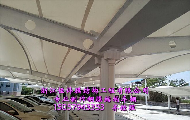 1. 耐用:由于高强度的膜材出现,再加上张拉技术的应用,使膜结构车棚抵御风雨的能力是一般雨蓬之类不可比拟的。有的车棚采用永久性膜材,可使用三、四十年。特别是遇到剧烈的暴风雨天气,膜结构建筑巍然不动,毫发不损。