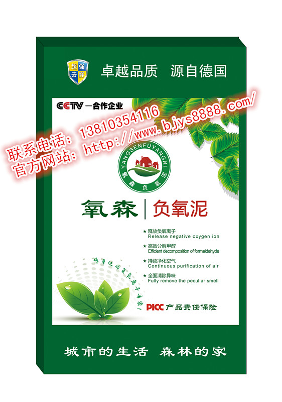 氧森负氧泥——目前世界上环保度最高,使用寿命最长,能长期释放负氧离子,杀菌、除异味、净化分解甲醛功能性最好的墙面环保装修材料。