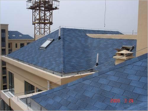 对于沥青瓦屋面,天沟的铺设方法有三种,敞开式,编织式,切割式。其中,单层沥青瓦较适用于编织式和切割式天沟。双层沥青瓦不能用编织式天沟。