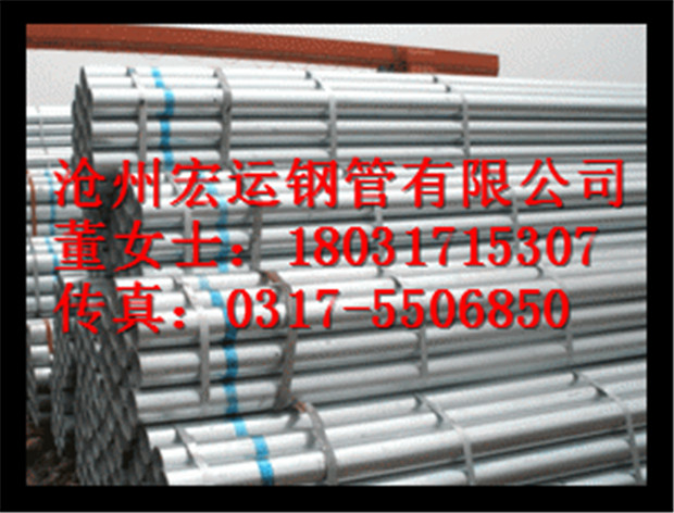 沧州宏运钢管有限公司厂家直销,4分(DN15)直缝镀锌钢管,壁厚1.1-2.75mm。标准GB/T3091 13793,材质Q235B。