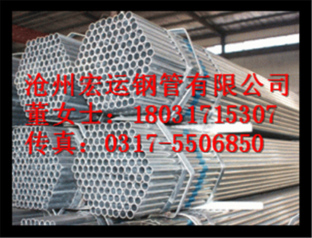 沧州宏运钢管有限公司厂家直销,3寸(DN80)直缝镀锌焊管,壁厚1.8-4.0mm。标准GB/T3091 13793,材质Q235B。
