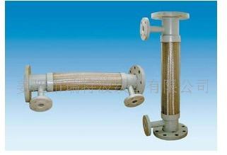双层控温波纹金属软管,二重管内外管同时流动两种不同的液体;外管内通蒸汽便于内管的液体加温,防止管内介质固化或降低内管介质及内管管壁的温度;外层管的出、入口相对位置180°。