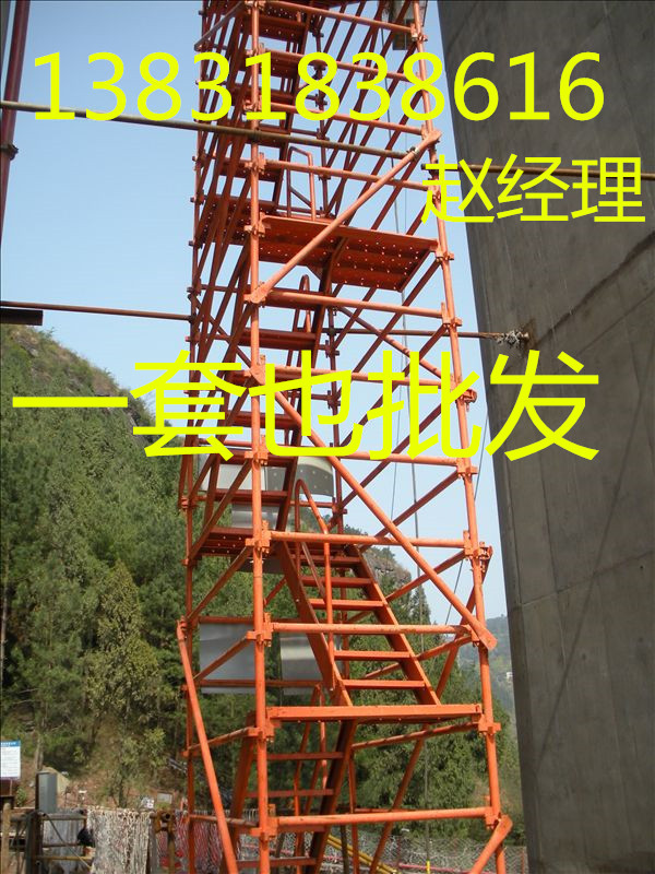 阜城县恒鑫安全爬梯是澳洲引进的系统脚手架。脚手架主要构件为立杆、横杆和斜杆,立杆上每间隔50CM设置有一排销库,销库由高强度钢板冲压制成,通过专用的夹具焊接在钢管上,焊缝长度大,具有极高的稳定性,横杆的两端分别设置有与销库相对应扣接并带有插片插头,横杆插头与立杆钢管接触的范围大,具有双向锁紧功能,每个销库节点可同时可装4个横杆接头。销库节点结构合理,立杆轴向传力,使脚手架整体在三维空间结构强度高、整体稳定性好、并具有可靠的自锁功能,能有效地提高脚手架的整架稳定强度和安全度,并能更好的满足施工安全的需要。广泛应用于房建、桥梁、立交桥、隧道、涵洞、烟囱、水塔、大坝及大跨度棚架等多种工程施工中。经过长期的发展,香蕉式脚手架已形成系列产品,配套完善,主要构件为立杆、横杆、斜杆、横撑、梯子、脚踏板、外支架、防护网
