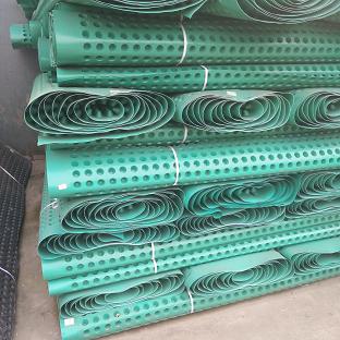 绿成排水板生产工艺上的紧密配置,凸台结构上设计合理,化学原料成分的调配,使排水板具有柔软性,又具有硬度,使绿成排水板强度有保障,柔软适度便易装卸、运输、铺设、施工。