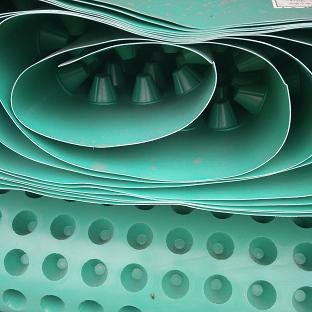 绿成排水板生产工艺上的紧密配置,凸台结构上设计合理,化学原料成分的调配,使排水板具有柔软性,又具有硬度,使绿成排水板强度有保障,柔软适度便易装卸、运输、铺设、施工。