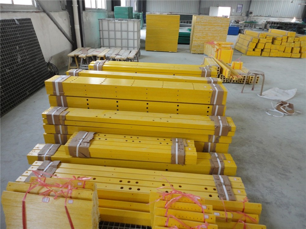 将充分浸渍过树脂混合液的连续玻璃纤维、无捻粗纱玻璃纤维、连续毡、表面毡等增强材料,通过成型模具,并在模腔中加温固化,在牵引机构拉力作用下,连续拉出无限长度的玻璃钢拉挤型材。拉挤型材具有很高的可设计性,各种—形状的拉挤型材通过适当的连接组合,可制成多样的玻璃钢产品。