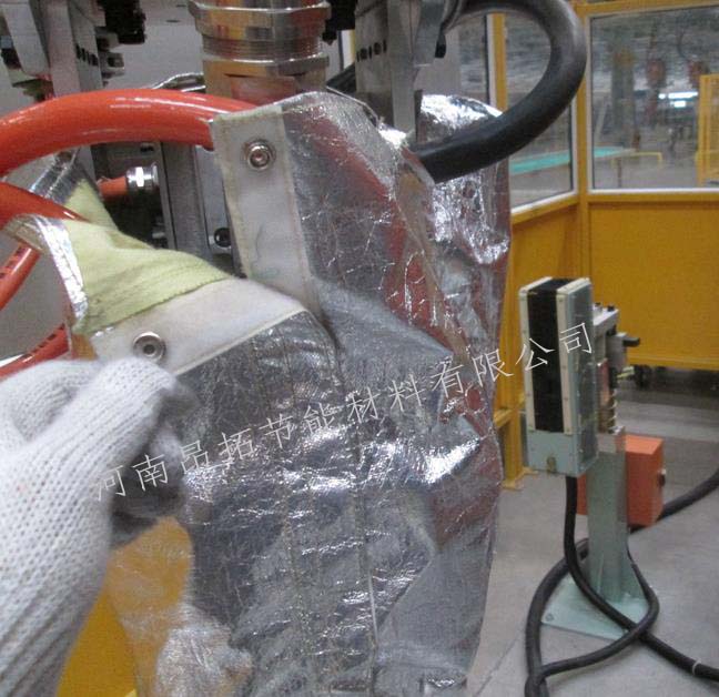 机器人复合防火罩主材料采用纯进纳米复合纤维,表面镀铝箔或涂层。具有超高强度、耐高温、阻燃、环保、美观等特点。机器人耐高温防护服辅料采用优质阻燃橡胶板、阻燃魔术扣、 阻燃橡筋等一系列优质阻燃材料。