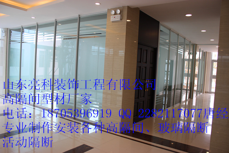山东玻璃隔断墙的主要结构是由高强度铝合金(框架)和其他高分子材料组成的,整个墙体的内部结构同样是由高强度铝合金材料、加工成预先设计的H型,是多点平均受力的高强度型材,完全满足防火、抗震、抗侧撞击、不同空气压等要求,隔间墙的整体外部结构是由1.2mm-2.0mm厚的铝合金,按设计形式挤压成型,经阳极氧化或表面电渡处理,制成高精级铝合金型材。处理的型材表面具有很强的漆膜硬度、抗冲击力,也具有很高的漆膜附着力,不易脱落老化,具有极强的光泽效果,其美观度和耐久性远超一般的钢板折边型材。