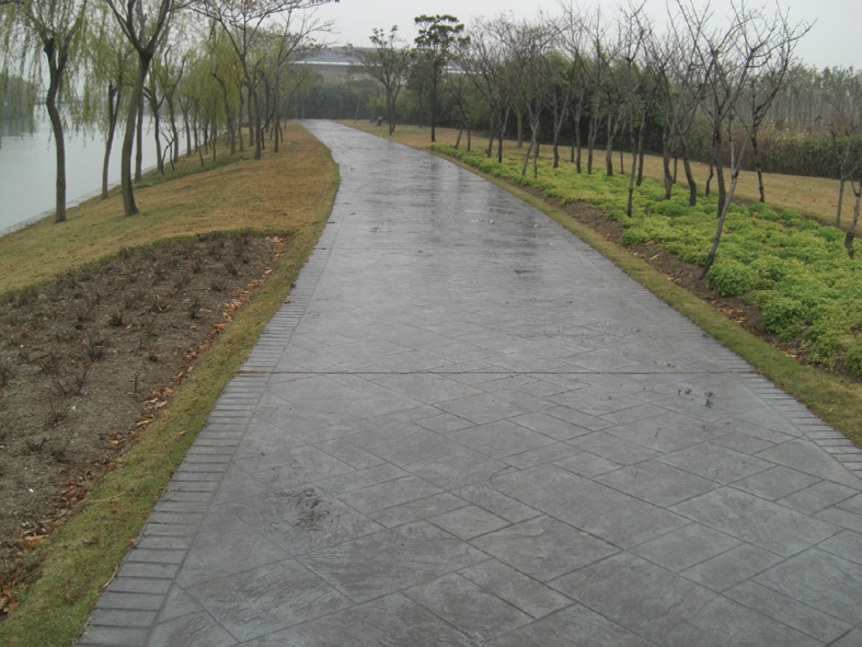 在一些公共的步行区,道路的防滑性是非常重要的,尤其是在坡道,楼梯踏步等一些地方,在垂直于人群行走方向铺装压模地坪是一种好办法,而且车行路面必须有足够的防滑性。道路对于一些铺路材料来说,完全使颜色保持持久是不可能的,所以在设计和应用时,应了解所用材料的色彩性质。
